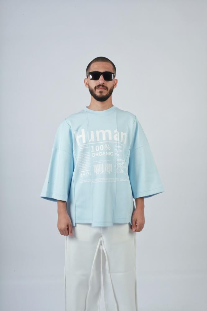 التصميم الأمامي يتميز بطباعة ضخمة تُحاكي ملصقات المنتجات، ولكن برسالة إنسانية عميقة: